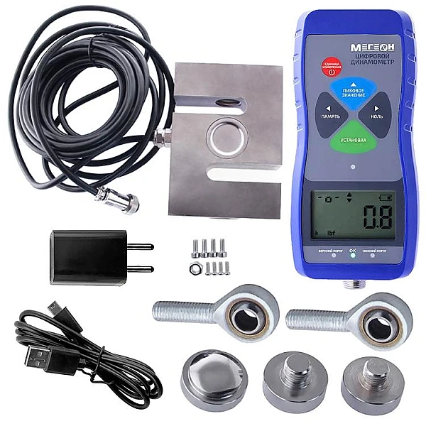 Компактный цифровой прибор МЕГЕОН 53002К с выносным тензодатчиком предназначен для измерений силы на сжатие-растяжение, проведения замеров усилия вставки и разъединения, для испытаний на разрушение в лабораториях и научно-исследовательских комплексах, а также в промышленной отрасли. В модели доступны функции фиксации пиковых показаний, а также вычисления максимальных, средних и минимальных значений. Выбрать измерительные единицы из трёх имеющихся можно при помощи соответствующей клавиши. Устройство обладает внутренней памятью, объемом 999 ячеек. Прибор используется в испытании различных изделий на растяжение-сжатие, измерения усилия вставки и разъединения, испытаниях на разрушение и т.д.