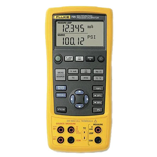 Из-за сложности современных систем промышленной автоматики, включающих в себя большое количество различных компонентов, их калибровка является довольно продолжительным и затратным процессом, так как в ходе выполнения таких работ приходится использовать целый набор разнотипных приборов и инструментов. Многофункциональный калибратор технологических процессов Fluke 725 способен определять показатели температуры (используя термопары или терморезисторы) и давления (с помощью внешних модулей давления), измерять электрические параметры (силу тока, напряжение, сопротивление, частоту) входных и выходных устройств, генерировать токовые сигналы и имитировать выходные сигналы датчиков (моделируя их электрические параметры), поэтому оказывается более эффективным при наладке сложных систем, заменяя собой несколько отдельных специализированных калибраторов и электроизмерительных приборов.
