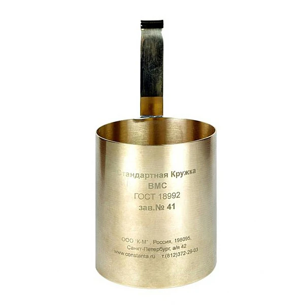 Прибор BMC - цилиндрический сосуд (чашка), исполненный из латунного сплава. Имеет ручку и три отверстия, пара - расположены вдоль образующей цилиндра (далее согласно техническому описанию - боковые отверстия), одно отверстие — расположено по центру основания прибора (нижнее отверстие). Срок службы прибора 6 лет. Прибор должен храниться при температуре воз-духа от +10С до + 35С, атмосферном давлении 0,1 МПа и при относительной влажности воздуха не более 80 %.