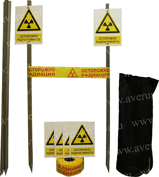 Ленту «Осторожно радиация» и знаки «Радиационная опасность», входящие в набор, используют для привлечения внимания к объектам потенциальной и (или) действительной опасности вредного воздействия на людей ионизирующего излучения.