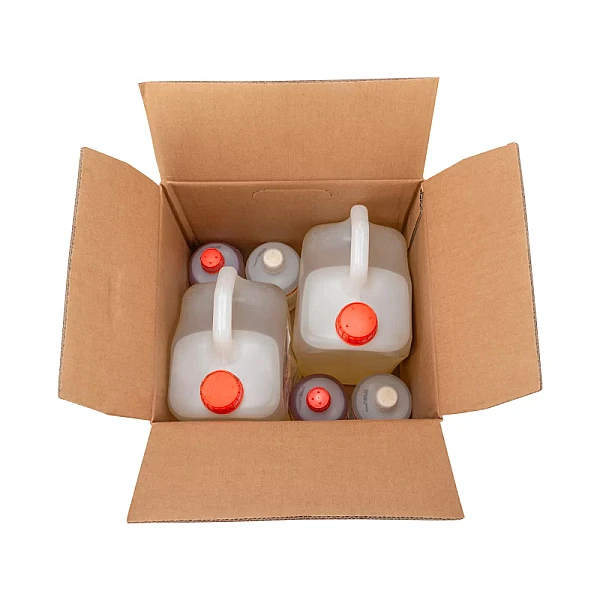 Розничный комплект поставки проявителя G135 (1 коробка) состоит из двух одинаковых полукомплектов, каждый из которых, в свою очередь, состоит из трех компонентов. Каждый из полукомплектов может быть разведен до 20 литров рабочего раствора. Для разведения одного полукомплекта проявителя необходимо в емкость с 10 литрами воды (температура воды от +15 до + 40 °C) влить 5 литра концентрата (компонент А), добавить 0,5 литра концентрата (компонент В) и добавить 0,5 литра концентрата (компонент С). После этого необходимо добавить в получившийся раствор оставшиеся 4 литра воды. ВНИМАНИЕ! После каждого добавления очередного компонента концентрата растворы следует тщательно перемешивать.