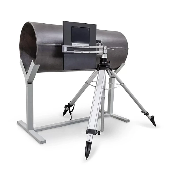 Высота штатива регулируется телескопическими ногами и выдвижной стойкой. В верхней части стойки установлен шаровый механизм, соединенный с держателем для детектора. Шаровый механизм позволяет регулировать положение детектора в пространстве.